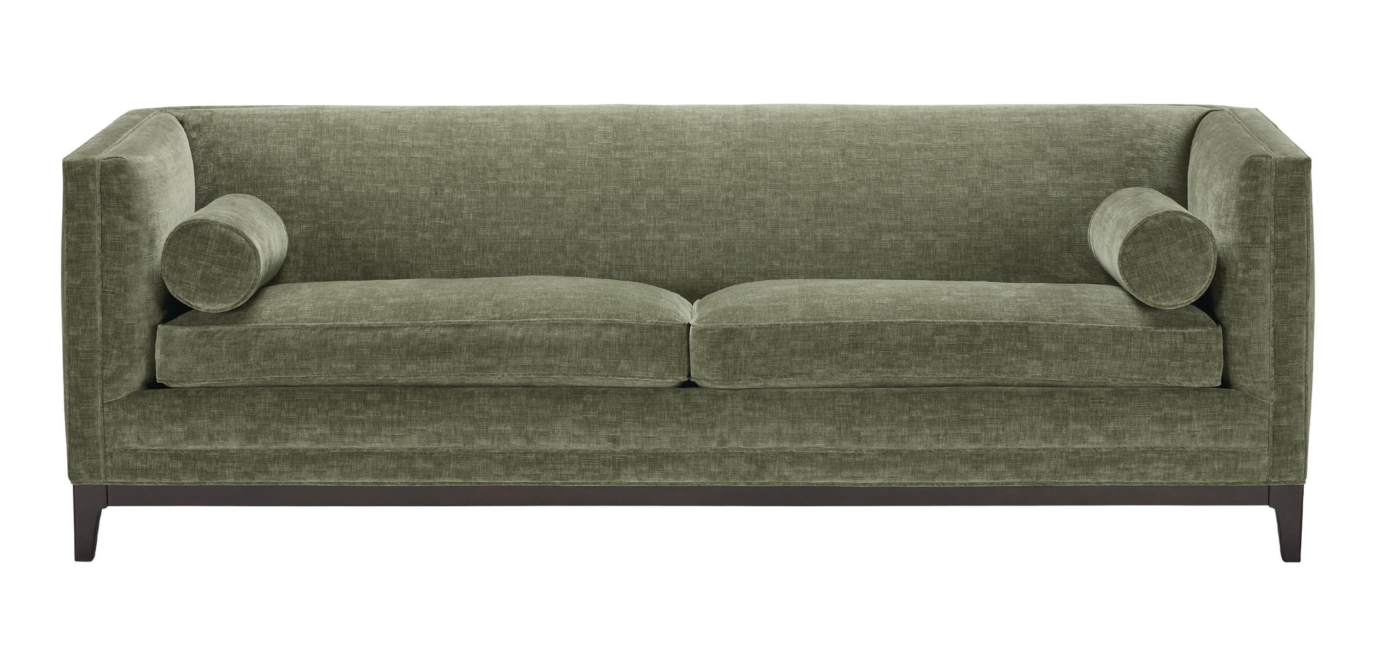 Tuxedo style sofa in green velvet.