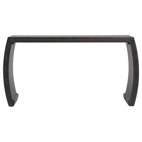 For sheer drama, anchor a wall with the Nikita console; tuck a pair of ottomans beneath, and hang an overscaled piece of artwork above. Made of crackled canvas over wood.